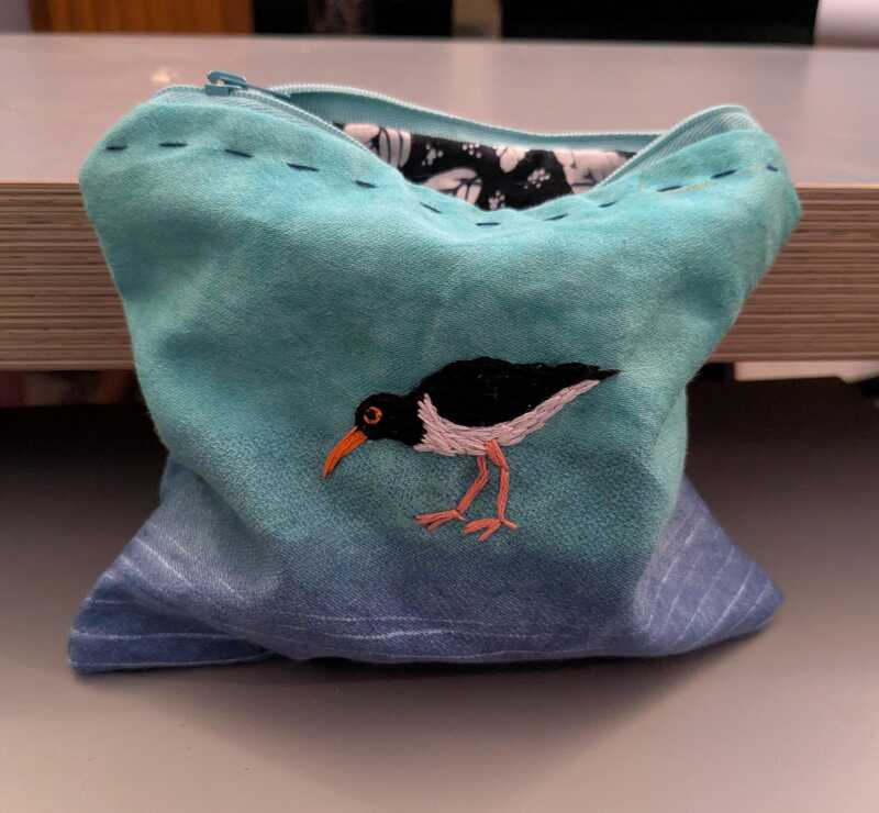 Oystercatcher embroidered pouch, for Issy (Jan 2026) -